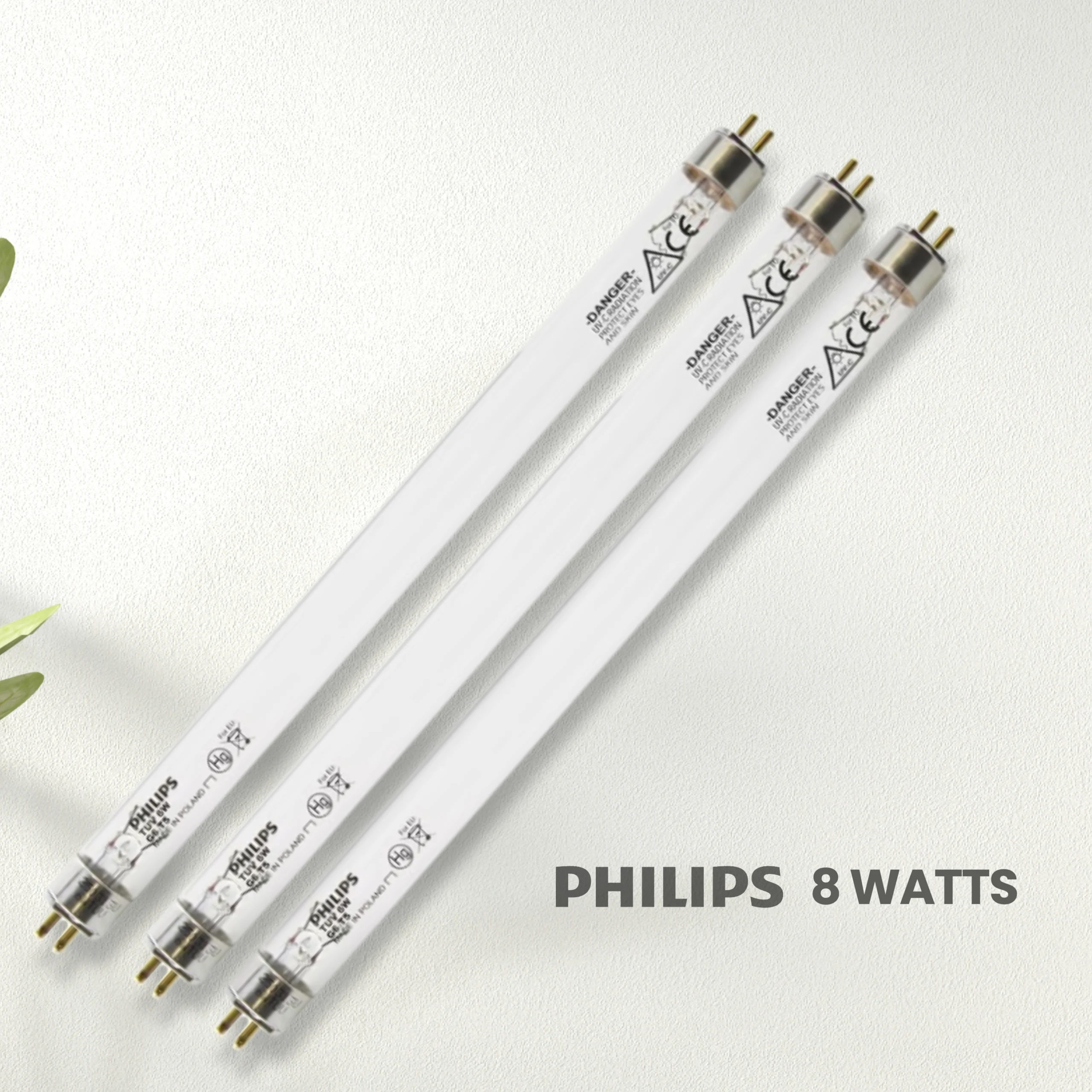 Cada lámpara incluye: 2 tubos de luz UV de 15W inastillable y 1 cartón engomado